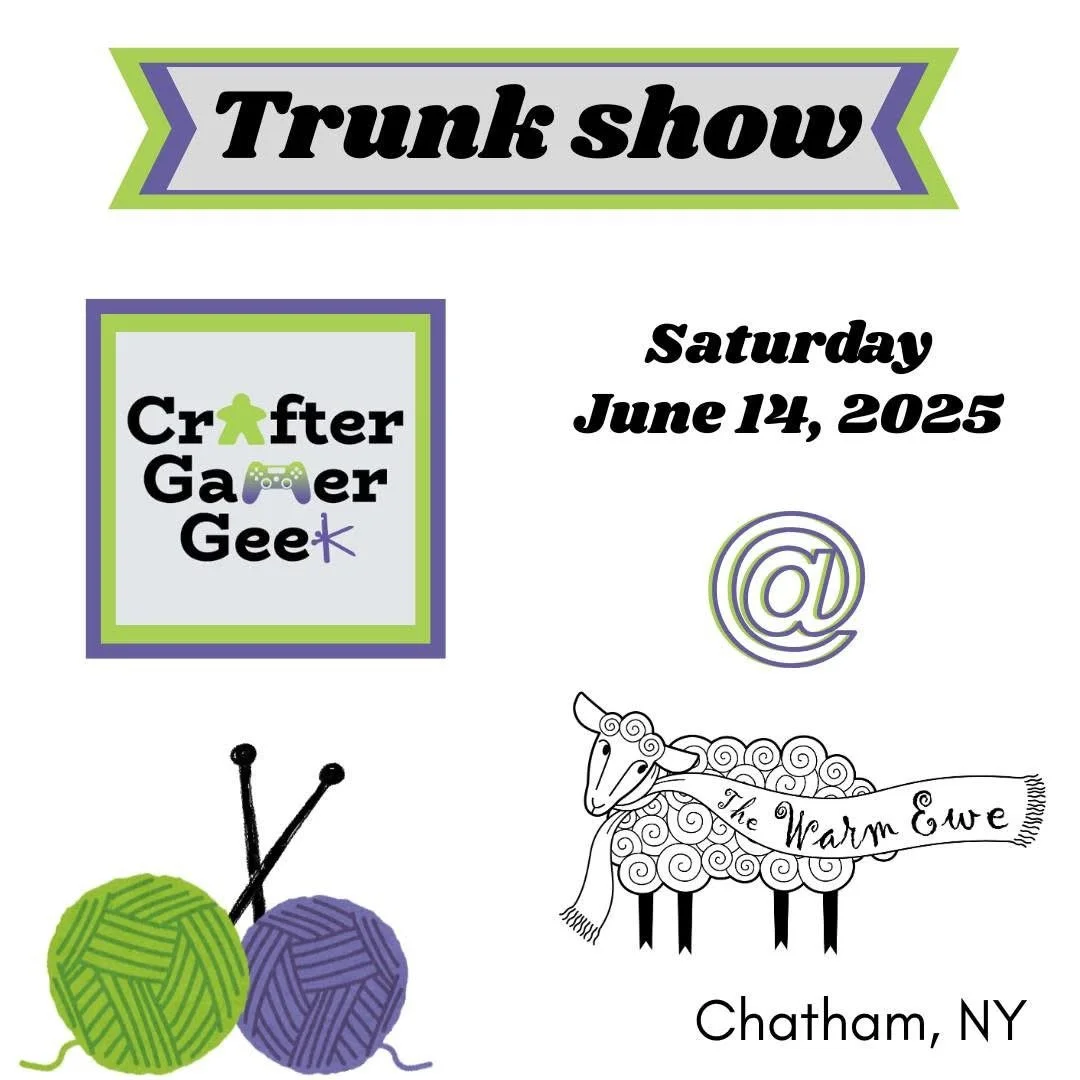 David Freer, owner and dyer behind Crafter Gamer Geek Yarns will be joining us for World Wide Knit In Public Day, Saturday, June 14th, with a selection of his beautiful yarns and samples. David is a new-to-us local indie dyer from Gardiner, NY. We are so excited that he approached us about doing a trunk sow so that we can introduce you to him and his yarns. David will also be bringing plenty of samples, both knitted and crocheted, so that you can see how the yarns work up and be inspired.